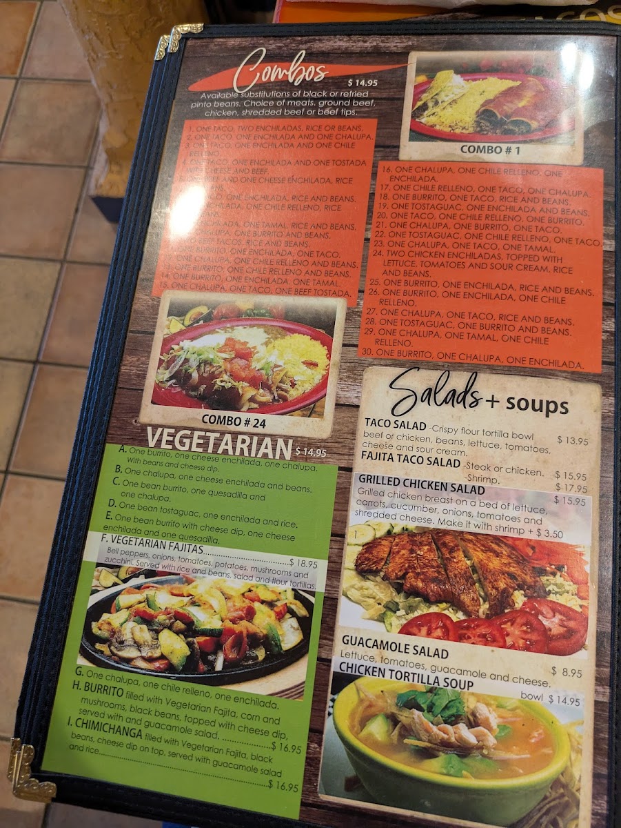 Bell pepper, onions, tomatoes, potatoes, and green squash. Served with beans, salad and hour tortillas.