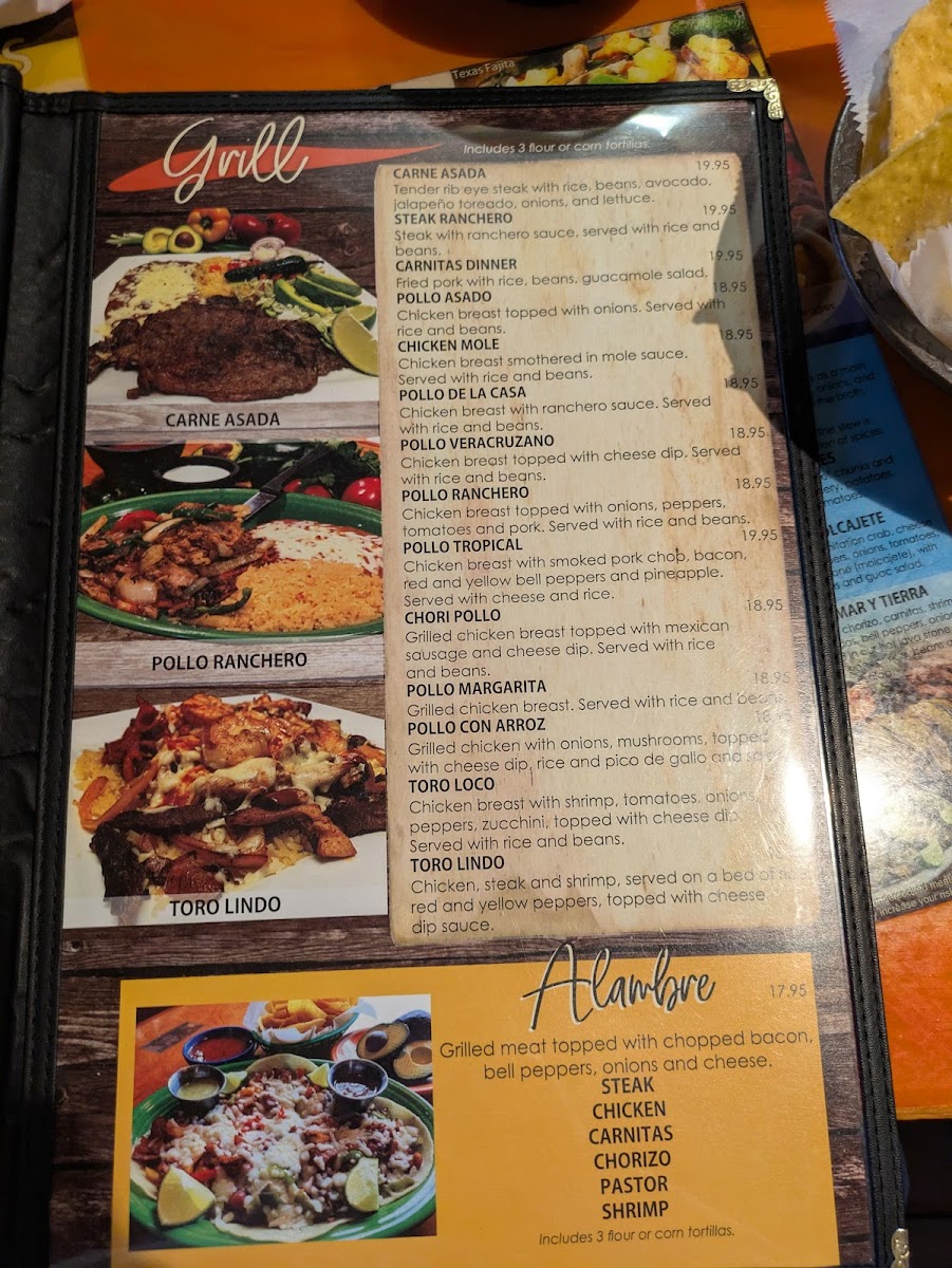 Chorizo Mexican sausage, beef and chicken. Served with refried beans, guacamole, salad and tortillas.